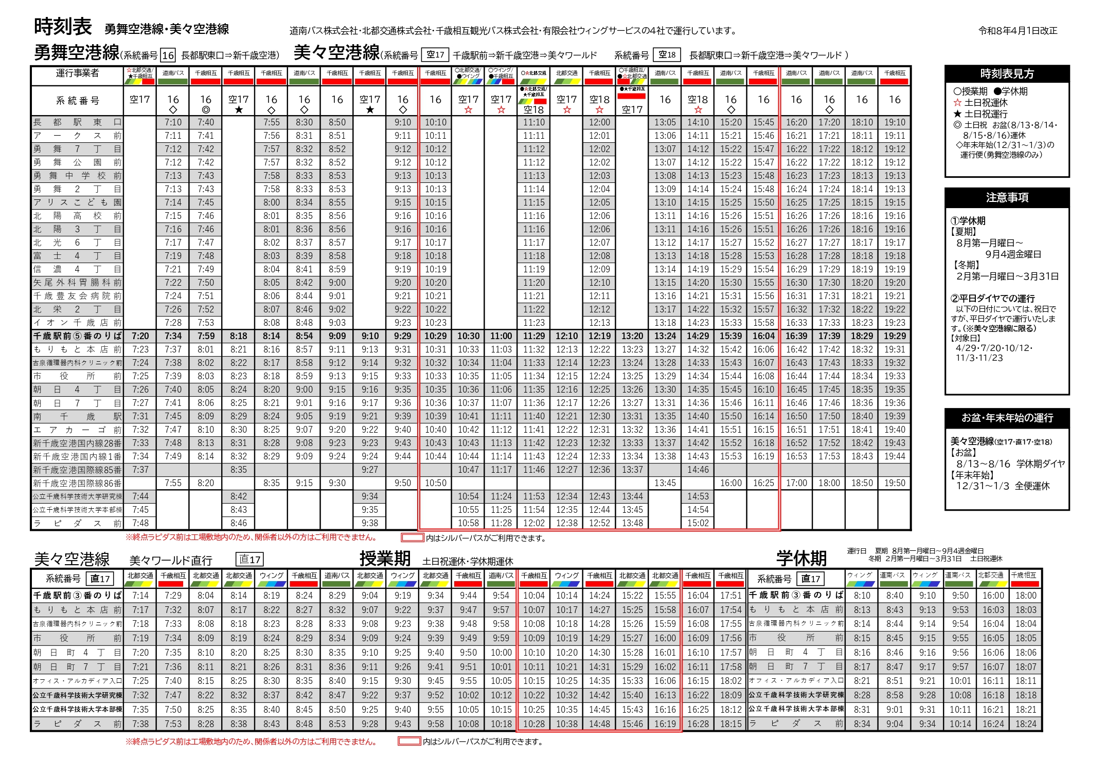 令和8年4月1日〜勇舞空港線・美々空港線総合時刻表